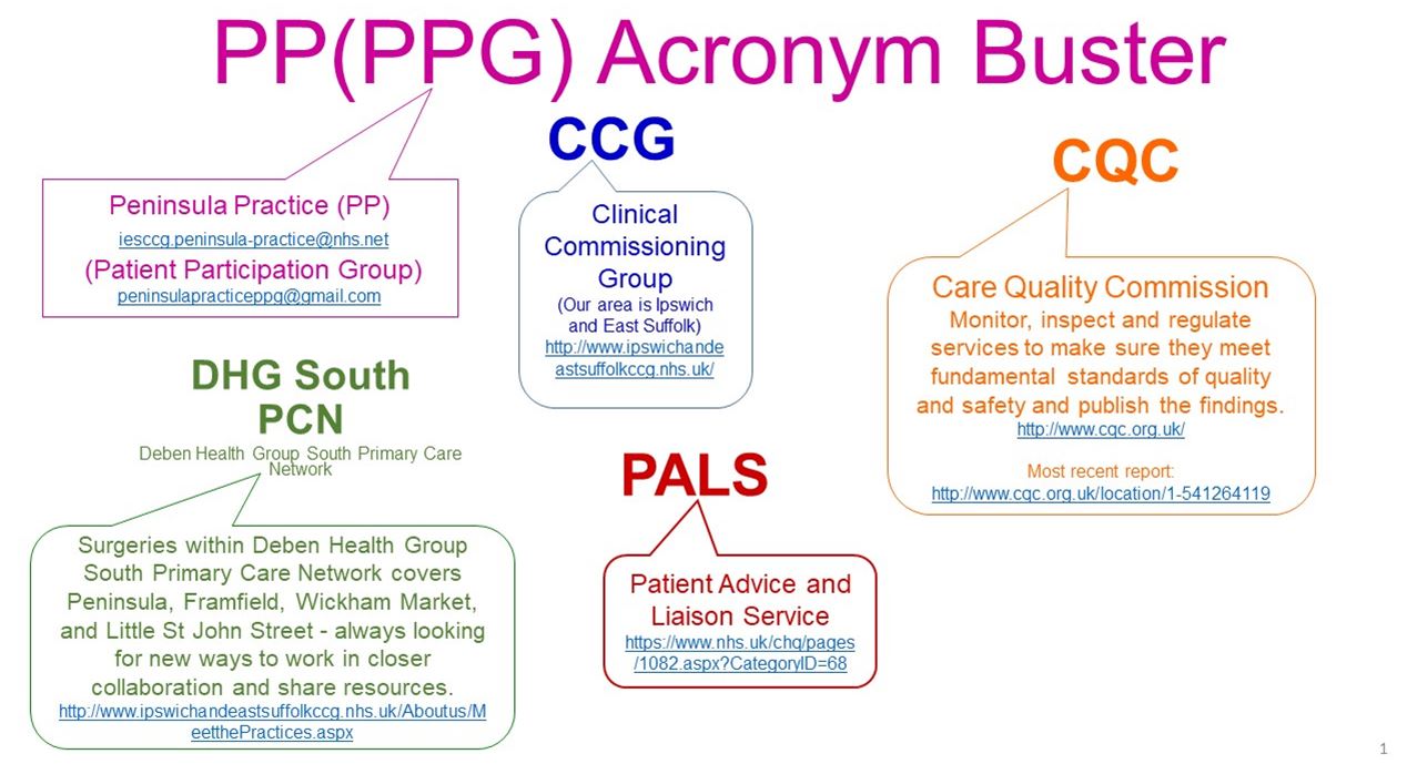 If you have and suggestions, ideas or concerns then please do get in touch with the group via email: - peninsulapracticeppg@gmail.com
